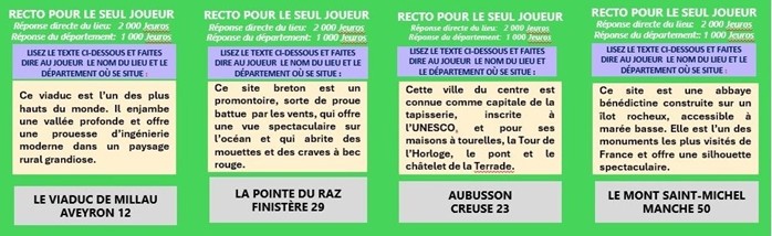 JEU N°2 :  DE 48 CARTES POUR TROUVER UN SITE OU LIEU EMBLÉMATIQUE PAR DÉPARTEMENT