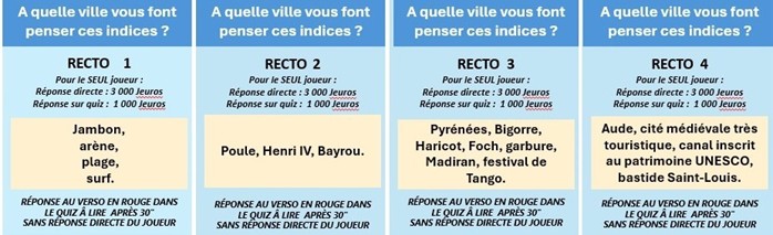 JEU N°4 : DE 208 CARTES POUR TROUVER LE NOM D’UNE DES VILLES DU JEU N°1 À PARTIR D’INDICES